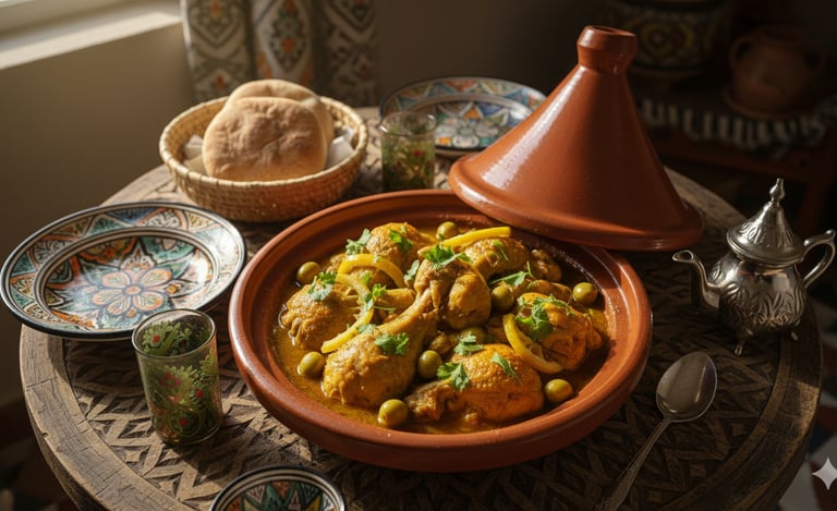 Quick summary: Moroccan Chicken Tagine with Preserved Lemon & Olives: Tender chicken, aromatic spices, tangy lemon, and briny olives braised to perfection. Serve with couscous.