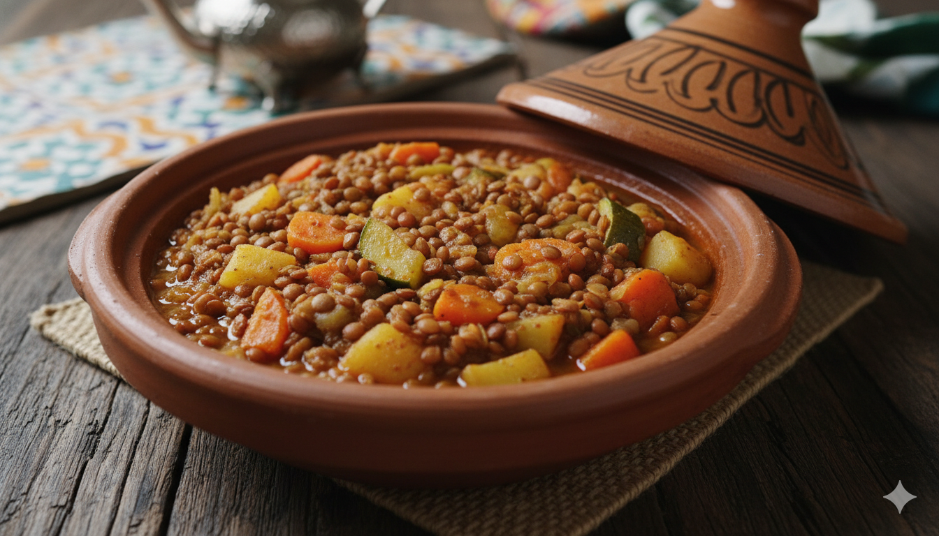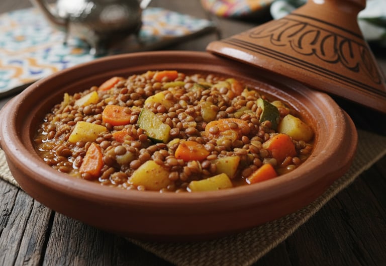 Quick summary: Hearty Moroccan Lentil & Vegetable Stew, aromatic with spices and fresh vegetables.