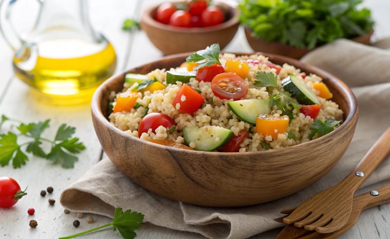 Cook the Quinoa (15 minutes cook, 5 minutes rest): In a medium saucepan, combine the rinsed quinoa, vegetable broth (or water), and a pinch of salt. Bring to a boil, then reduce heat to low, cover, and simmer for 15 minutes, or until all liquid is absorbed. Remove from heat and let stand, covered, for 5 minutes. Fluff with a fork.