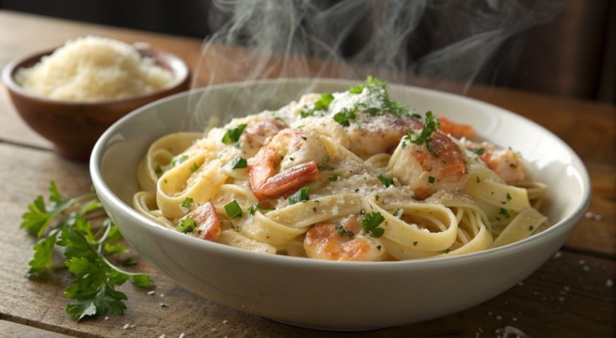 Whether served at a family dinner or enjoyed in a restaurant, Creamy Seafood Alfredo Pasta remains a beloved example of comfort food elevated by tradition, adaptation, and timeless flavor.