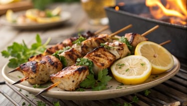 These vibrant grilled chicken skewers are packed with Mediterranean-inspired flavors, featuring tender chicken marinated in lemon, garlic, and herbs, then grilled to perfection. They're an easy and impressive dish perfect for summer BBQs or a weeknight meal.