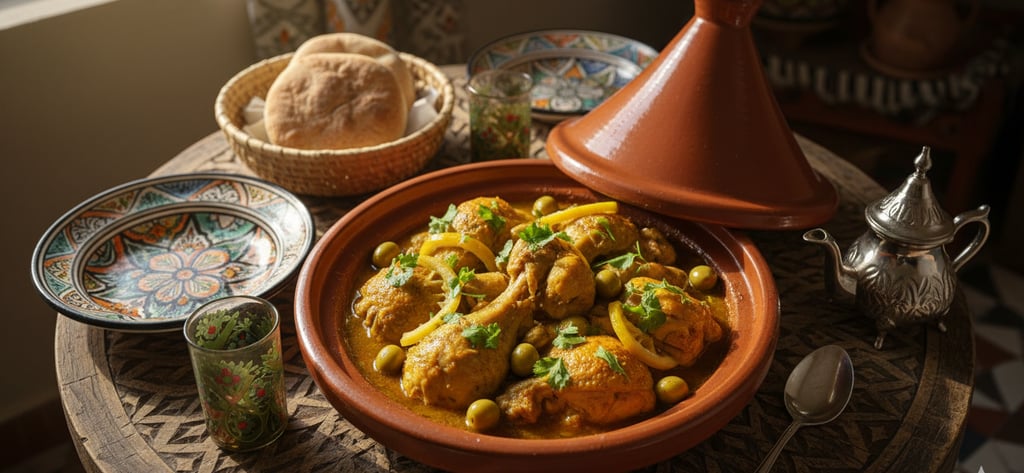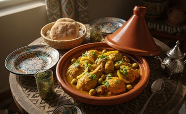 Quick summary: Moroccan Chicken Tagine with Preserved Lemon & Olives: Tender chicken, aromatic spices, tangy lemon, and briny olives braised to perfection. Serve with couscous.