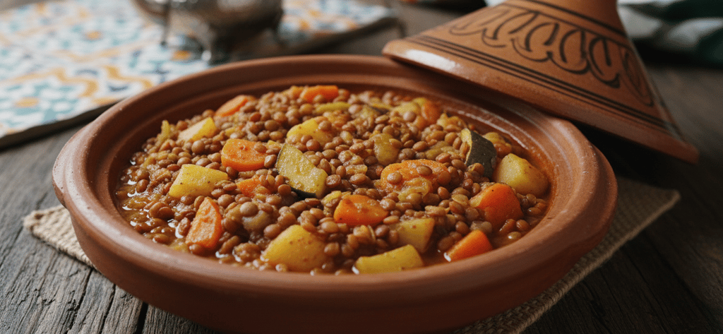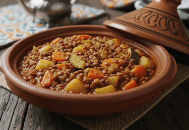 Quick summary: Hearty Moroccan Lentil & Vegetable Stew, aromatic with spices and fresh vegetables.