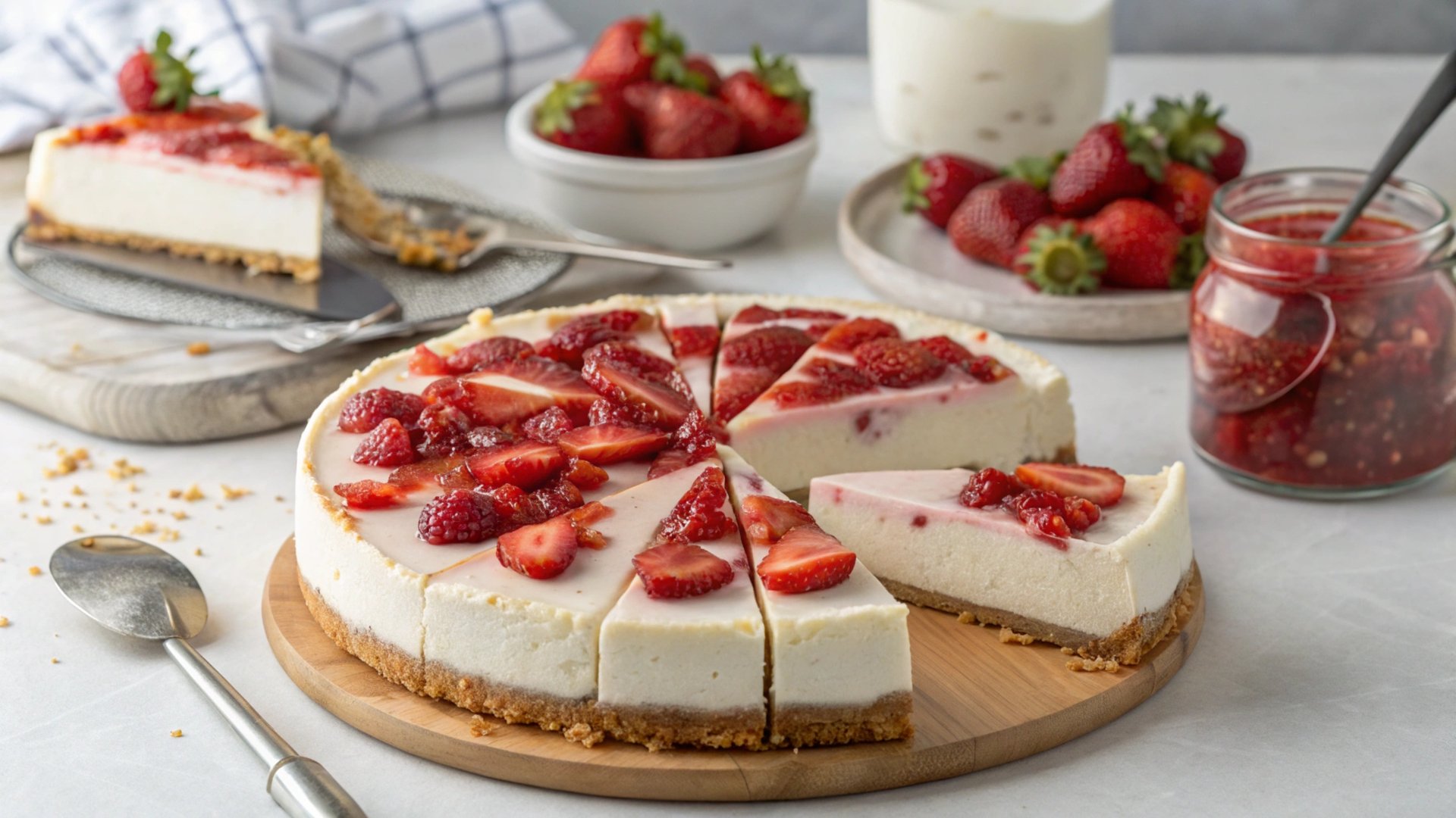 Other Fruit Toppings: This cheesecake is versatile! Try a blueberry, raspberry, or mixed berry topping instead of strawberries. You can also simply serve with fresh fruit.