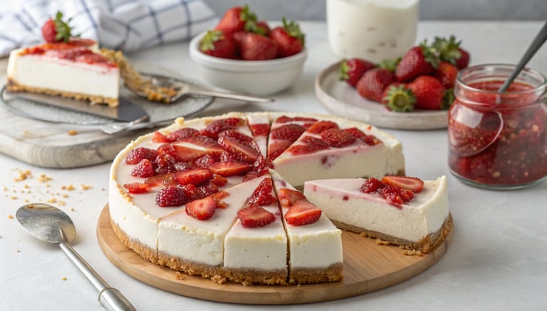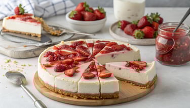 This delightful no-bake strawberry cheesecake features a buttery graham cracker crust, a rich and creamy vanilla filling, and a vibrant, sweet-tart fresh strawberry topping. It's the perfect dessert for any occasion, especially when you want something impressive yet easy to prepare.